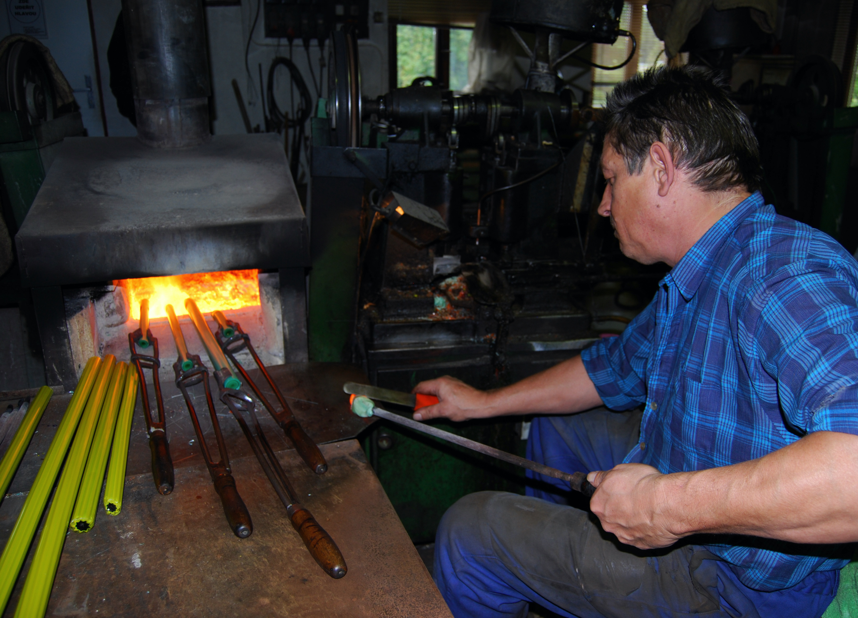 Glass rods fired at a cottage factory in the Jizera Mountain region of the northern Czech Republic.