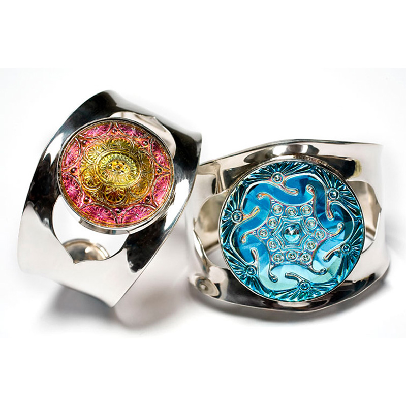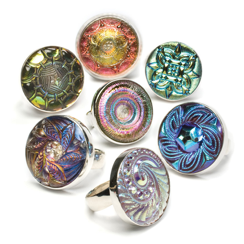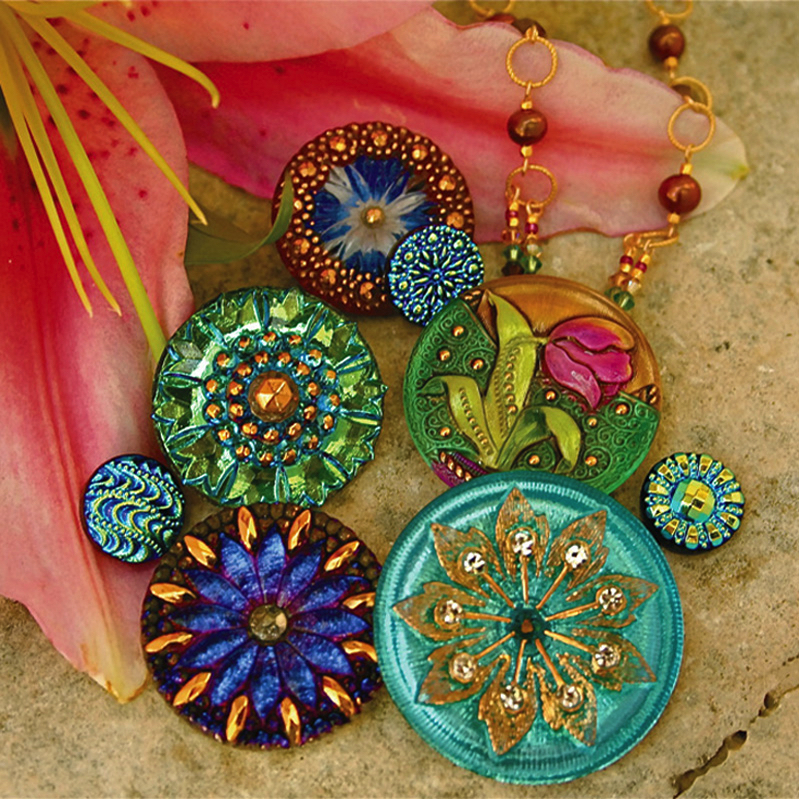 Cynthia Bloom says she was “bedazzled” the first time she saw a Bohemian glass button. “I had never seen anything with such color, brilliance, iridescence,” she said. “Coming from my fashion background, I knew they would be stunning statement pieces.”