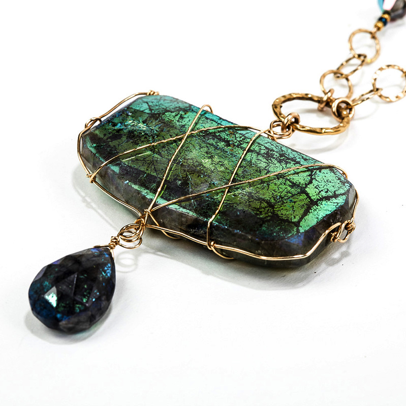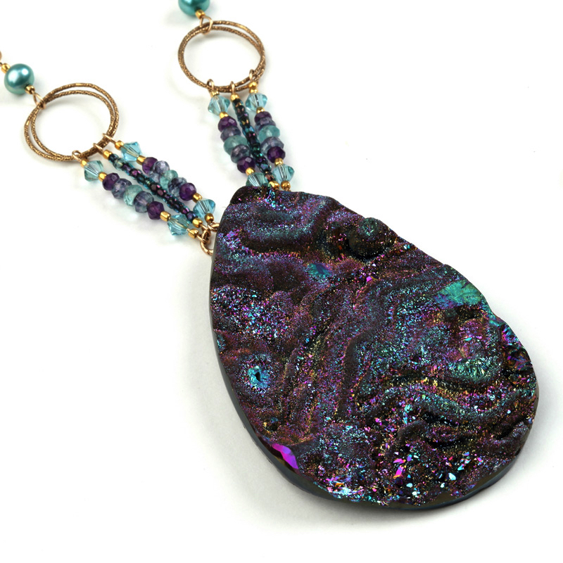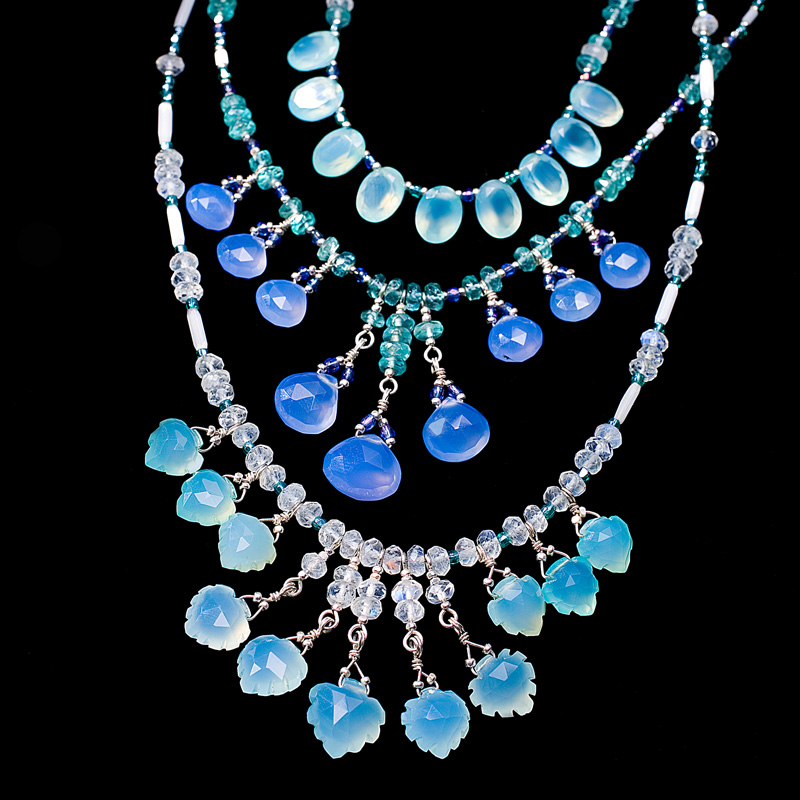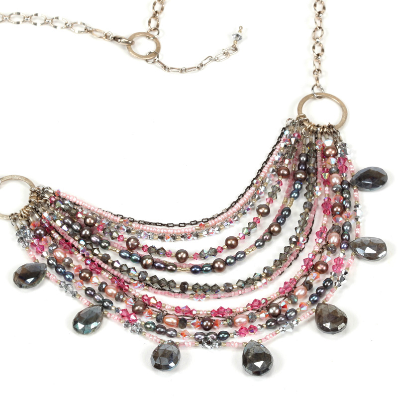 By integrating the pearls, gemstones, crystals, and antique beads, Cynthia’s creations capture a delightful, dramatic interplay of light, color, and texture “going on simultaneously within each one-of-a-kind piece of jewelry.”