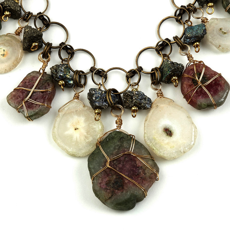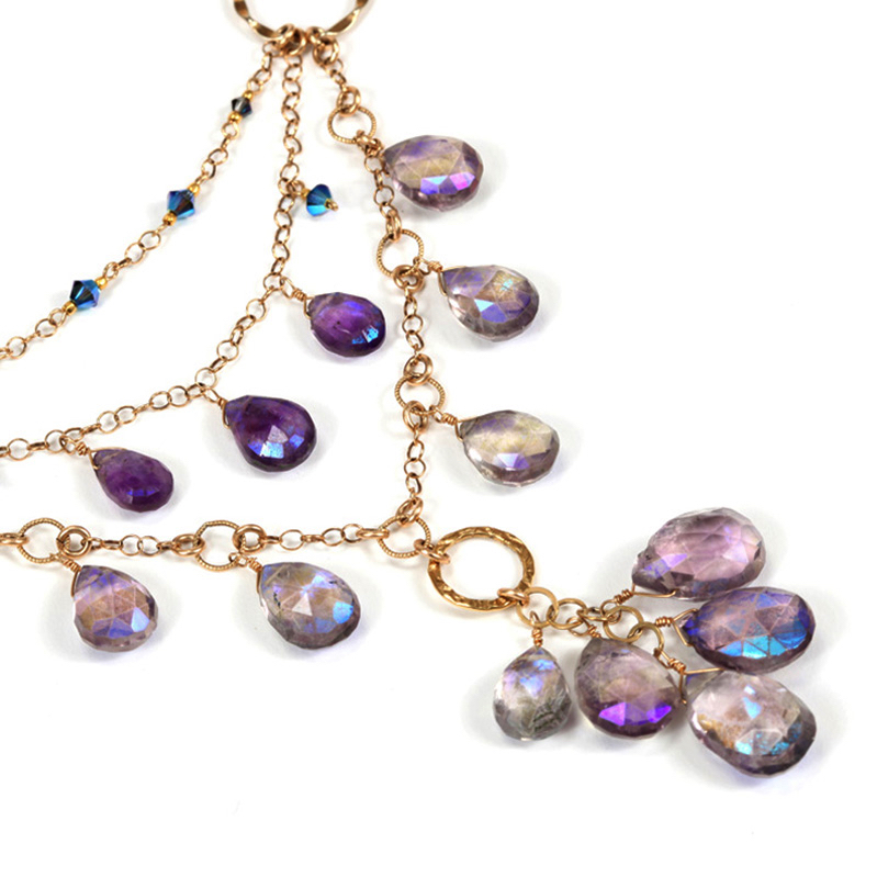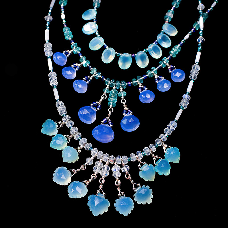 Cynthia Bloom’s jewelry design intention is to create brilliant playgrounds of color and light. While crystals and antique beads supply sparkle and pressed glass buttons add iridescent shimmer, she also loves to explore the elemental luster of natural gemstones and freshwater pearls.